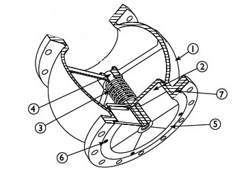 靜音式止回閥主要由閥體、閥座、導(dǎo)流體、閥瓣、軸承及彈簧等主要零件組成,內(nèi)部流道采用流線型設(shè)計,壓力損失極小。閥瓣啟閉行程很短,停泵時可快速關(guān)閉,防止巨大的水錘聲,具有靜音關(guān)閉的特點。